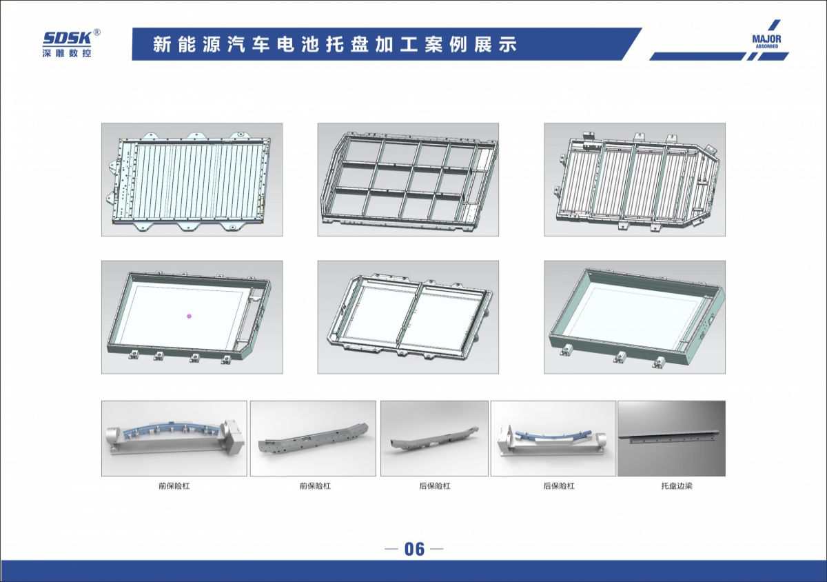 應(yīng)用加工領(lǐng)域:新能源電池托盤(pán)加工/航空航天細(xì)長(zhǎng)零配件/機(jī)翼配件磁懸浮高鐵行李架/電池盒/鋁通風(fēng)裝置/燈源主體前燈鋁制品