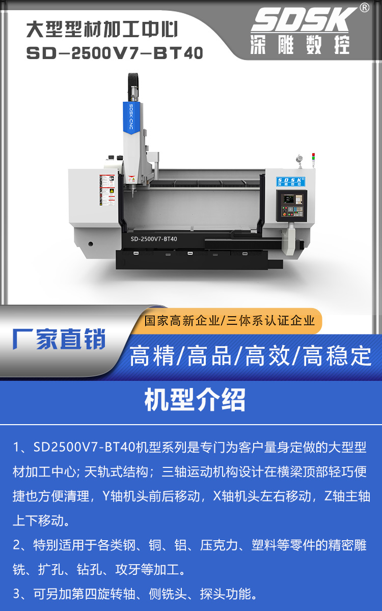 大型型材加工中心SD2500V7-BT40數控機床參數配置